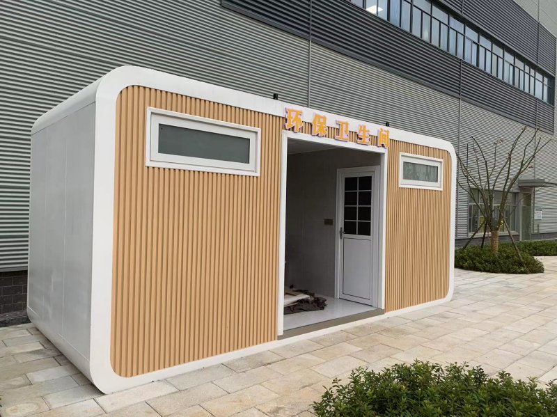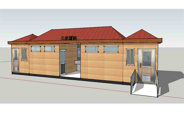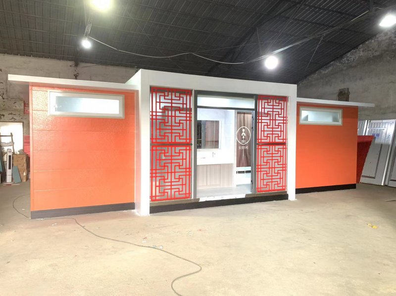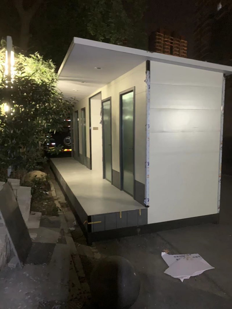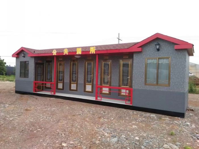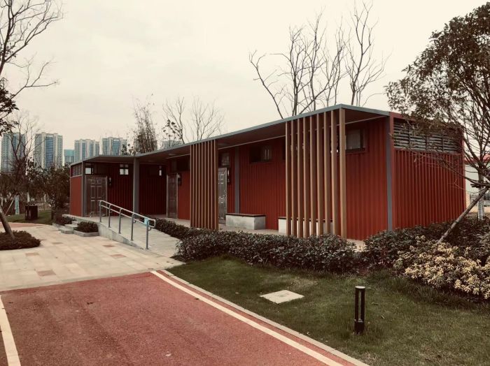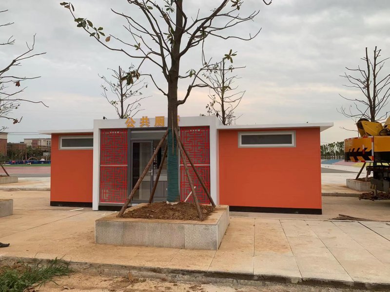 MORE拼裝廁所;在廠里做好各個(gè)廁所部件,再到現(xiàn)場(chǎng)組裝在一齊,適合不易運(yùn)輸?shù)拇笮蛶_@座箱式廁所,女廁5個(gè)蹲位內(nèi)配工具間,男廁2個(gè)蹲位+2小便斗,第三衛(wèi)生間由殘疾馬桶、助力洗手盆和兒童馬桶、兒童洗手盆外加?jì)雰号_(tái)等設(shè)施。廁所前后有窗,通風(fēng)采光,前部走廊裝有屋檐,防雨防曬。此廁所位于公路綠道邊,整體大氣,功能齊全,造型美觀,是一道難得的靚麗景觀!