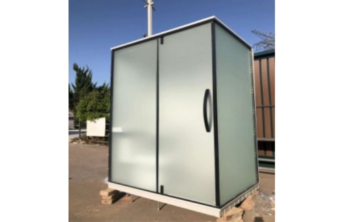 MORE單體廁所,適用于對(duì)廁所用地較小,配套設(shè)施不很齊全的環(huán)境臨時(shí)使用或過度使用方式。單人使用,設(shè)施配備蹲便器,洗手盆,排風(fēng)扇,照明等。